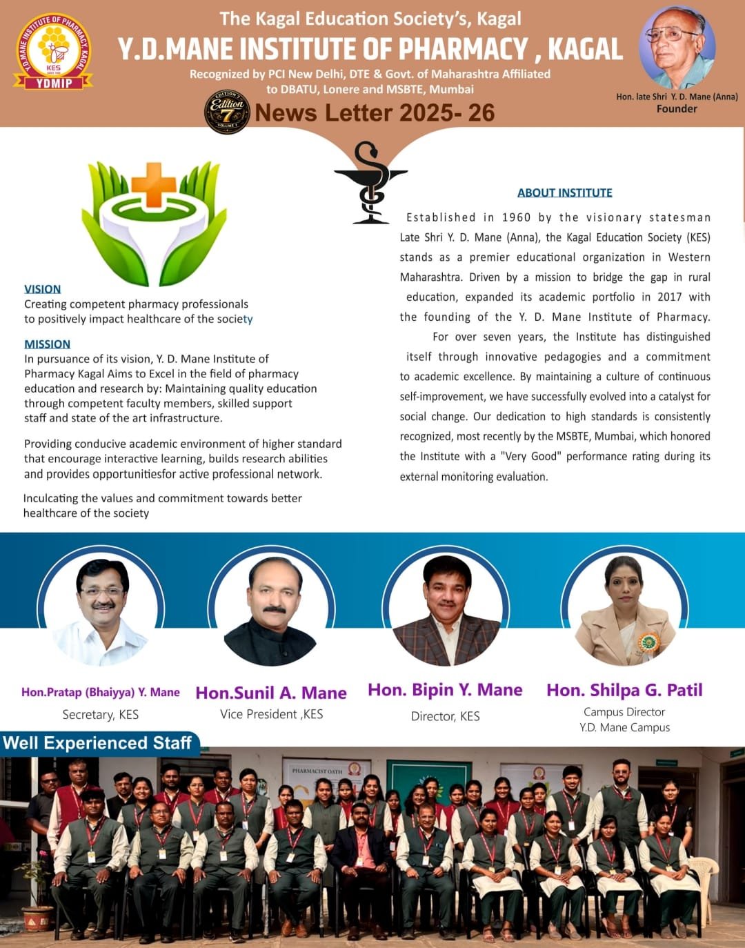 It gives me immense pleasure to welcome you to the Y. D. Mane Institute of Pharmacy, Kagal. As we stand in 2025-2026, the pharmaceutical landscape has undergone a profound transformation.