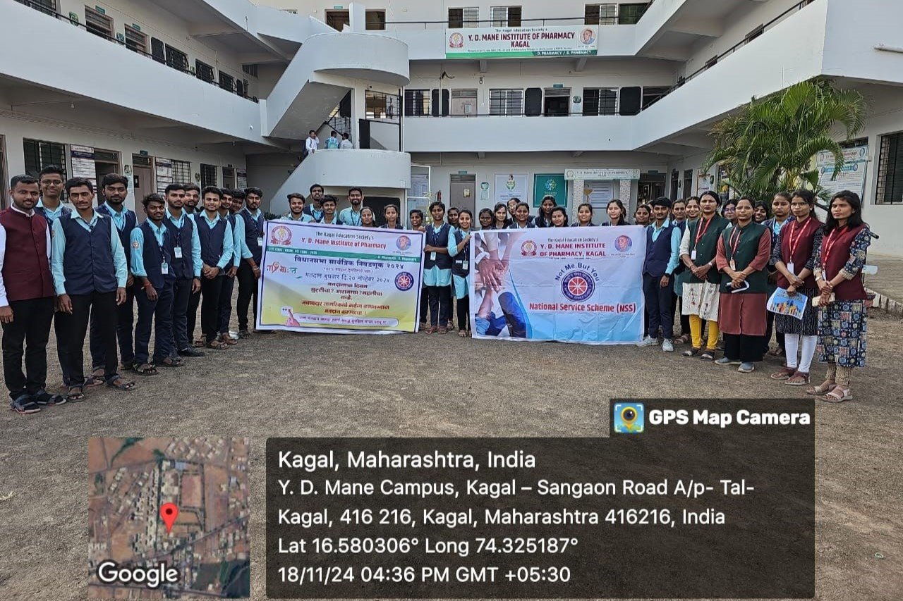 दि. कागल एज्युकेशन सोसायटी संचलित वाय. डी. माने इन्स्टिटयूट ऑफ फार्मसी कागल मध्ये शिवस्वराज्य दिन उत्साहात साजरा करण्यात आला.