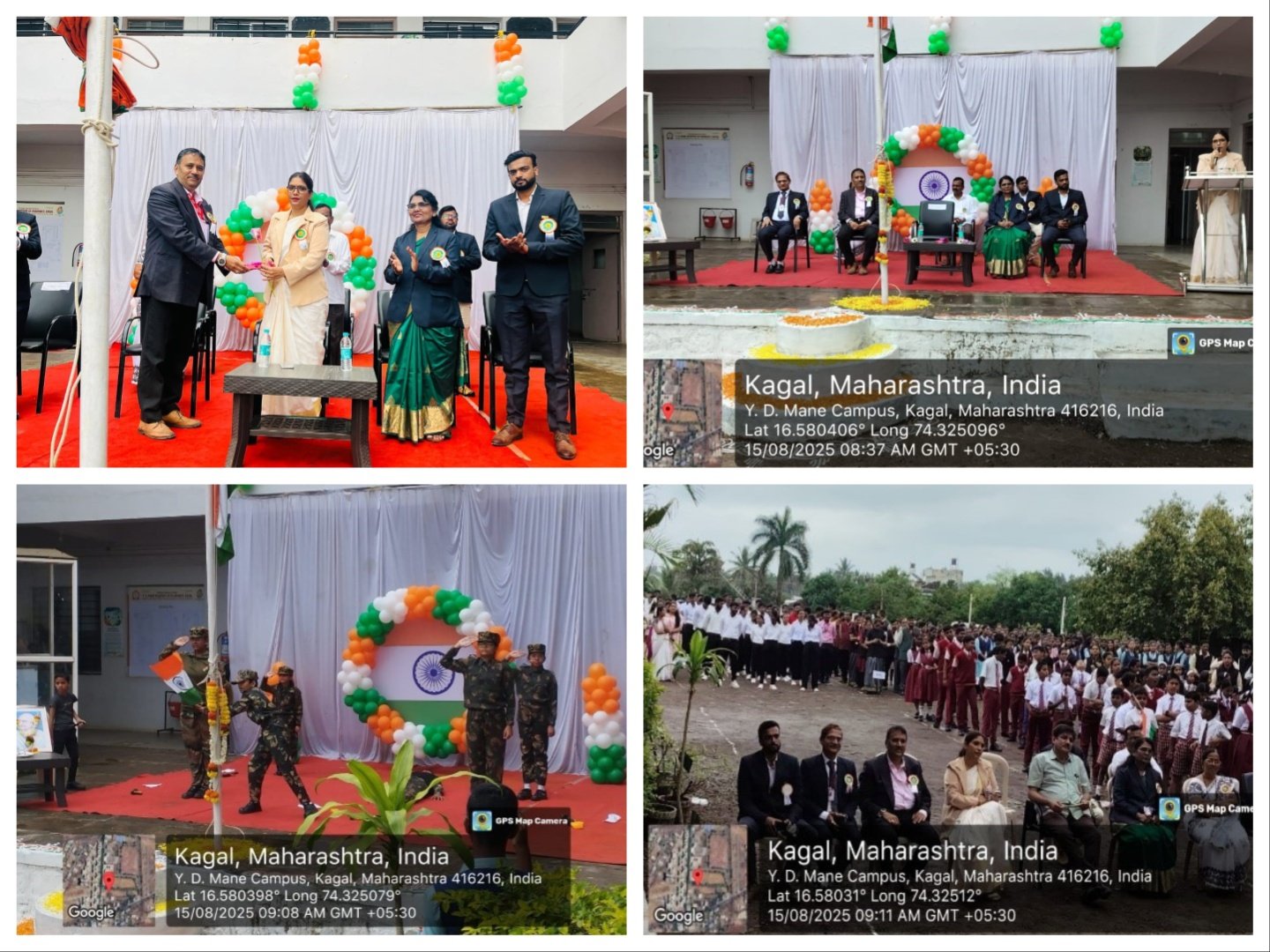 The national flag was hoisted by the chief guest of the event, Mrs. Shilpa G. Patil, Campus Director of Y.D. Mane Kagal. In her inspiring address, she emphasized the importance of independence, national integrity, and the responsibility of students towards the nation’s progress.